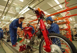 重慶某民營(yíng)摩托車企業(yè)繁忙的生產(chǎn)線。 | 發(fā)展戰(zhàn)略:構(gòu)建“一圈兩翼”