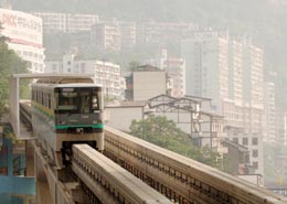 在城市中穿行的輕軌列車