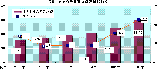 全年實(shí)現(xiàn)社會消費(fèi)品零售總額89.70億元,比上年增長22.7%。其中:城市消費(fèi)品零售額43.80億元,增長32.7%;縣及縣以下消費(fèi)品零售額45.91億元,增長14.5%。分行業(yè)看,批發(fā)和零售業(yè)零售額71.61億元,增長21.0%;住宿和餐飲業(yè)零售額15.76億元,增長27.3%;其他行業(yè)零售額2.34億元,增長53.2%。