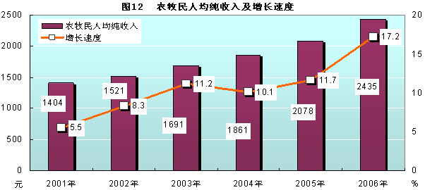 2006年,是“十一五”計(jì)劃的開局之年。全區(qū)各族人民在自治區(qū)黨委和自治區(qū)人民政府的堅(jiān)強(qiáng)領(lǐng)導(dǎo)下,以鄧小平理論和“三個(gè)代表”重要思想為指導(dǎo),以科學(xué)發(fā)展觀統(tǒng)領(lǐng)經(jīng)濟(jì)社會發(fā)展的全局,緊緊圍繞新時(shí)期西藏工作指導(dǎo)方針,全面實(shí)施“一產(chǎn)上水平、二產(chǎn)抓重點(diǎn)、三產(chǎn)大發(fā)展”的經(jīng)濟(jì)發(fā)展戰(zhàn)略,實(shí)現(xiàn)了國民經(jīng)濟(jì)又好又快的發(fā)展,各項(xiàng)社會事業(yè)全面進(jìn)步,城鄉(xiāng)居民生活繼續(xù)改善,“十一五”開局良好。