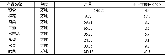 表2 主要農(nóng)副產(chǎn)品產(chǎn)量