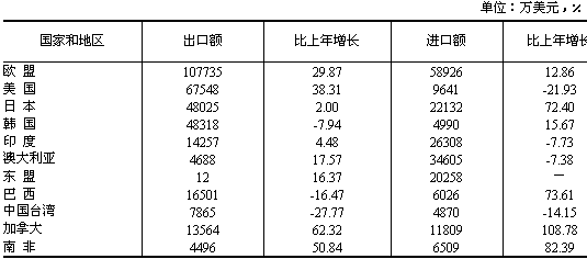 進出口總額創(chuàng)歷史新高。全年全省累計完成海關(guān)進出口總額66.3億美元,比上年增長19.5%。其中出口41.4億美元,增長17.3%;進口24.9億美元,增長23.3%。累計實現(xiàn)貿(mào)易順差16.5億美元。在出口中,一般貿(mào)易34.4億美元,增長13.4%;加工貿(mào)易7.0億美元,增長94.7%。在進口中,一般貿(mào)易18.8億美元,增長19.8%;加工貿(mào)易4.2億美元,增長74.9%。 出口產(chǎn)品結(jié)構(gòu)進一步優(yōu)化,資源類產(chǎn)品出口比重下降,機電產(chǎn)品和高新技術(shù)產(chǎn)品比重上升。2006年,出口煤炭543.6萬噸,比上年下降33.2%,出口金額3.5億美元,下降28.4%;出口焦炭803.0萬噸,增長34.6%,出口金額11.3億美元,增長1.1%;出口金屬鎂16.2萬噸,下降12.3%,出口金額3.0億美元,下降4.7%,焦煤鎂出口比重由2005年的54.2%降至2006年的43.0%。機電產(chǎn)品出口8.9億美元,增長49.6%。高新技術(shù)產(chǎn)品出口1.9億美元,增長84.2%。機電產(chǎn)品和高新技術(shù)產(chǎn)品出口比重由2005年的19.8%升至2006年的26.1%。 全省進口鐵礦砂及其精礦750.6萬噸,比上年增長16.7%,進口金額4.9億美元,增長7.4%;機電產(chǎn)品進口8.8億美元,增長18.5%;高新技術(shù)產(chǎn)品進口1.5億美元,下降23.0%。 2006年與我省有貿(mào)易往來的國家和地區(qū)達到174個,比上年增加8個。上億元的貿(mào)易伙伴達到了14個。