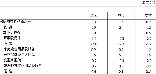 全區(qū)居民消費(fèi)價格上漲1.3%,其中服務(wù)價格上漲4.6%。商品零售價格上漲0.3%。工業(yè)品出廠價格上漲9.6%。原材料、燃料、動力購進(jìn)價格上漲11.4%。農(nóng)業(yè)生產(chǎn)資料價格上漲1.0%。固定資產(chǎn)投資價格上漲1.2%。農(nóng)產(chǎn)品生產(chǎn)價格上漲6.8%。