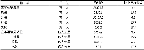 表11 2006年各種運(yùn)輸方式完成旅客運(yùn)輸量及其增長速度