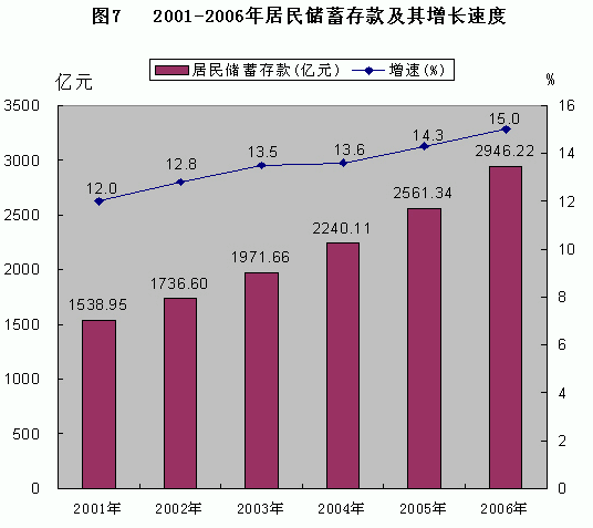 表12 2006年全部金融機(jī)構(gòu)存貸款及其增長速度