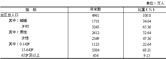 4961萬人,比上年末增加36萬人。年末常住人口(指常住廣西半年及以上的人口)4719萬人。全年出生人口71萬人,出生率為14.44‰;死亡人口30萬人,死亡率為6.10‰;自然增長率為8.34‰。出生人口性別比為119.23。