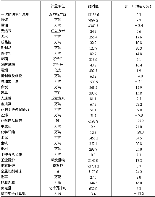工業(yè)產(chǎn)銷水平進一步提高。全年規(guī)模以上工業(yè)產(chǎn)銷率為98.2%,比上年提高1.1個百分點;工業(yè)品出口交貨值104.1億元,增長24.3%。在234種工業(yè)產(chǎn)品中,產(chǎn)量比上年增長或持平的有162種,占69.2%,其中有53種產(chǎn)品產(chǎn)量增幅超過30%。規(guī)模以上工業(yè)企業(yè)主要工業(yè)產(chǎn)品產(chǎn)量如下:
