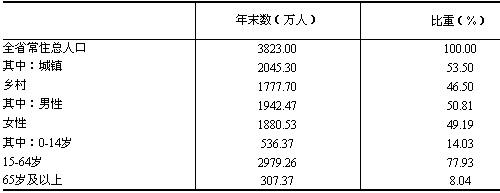 人口繼續(xù)保持低速增長。據(jù)抽樣調(diào)查測算,全省人口出生率7.57‰,死亡率5.18‰,人口自然增長率2.39‰。年末全省常住總?cè)丝?823萬人。全省人口主要構(gòu)成情況如下: