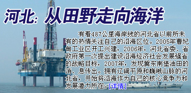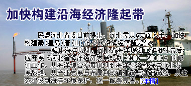今年初,河北省政府批準(zhǔn)設(shè)立滄州渤海新區(qū),決定從產(chǎn)業(yè)發(fā)展、基礎(chǔ)設(shè)施、財(cái)政稅收以及土地、海域使用等多方面給予大力支持,力爭(zhēng)使滄州成為繼唐山曹妃甸工業(yè)區(qū)之后全省第二大經(jīng)濟(jì)增長(zhǎng)極和實(shí)施"東出西聯(lián)"戰(zhàn)略的橋頭堡。[詳情] | |