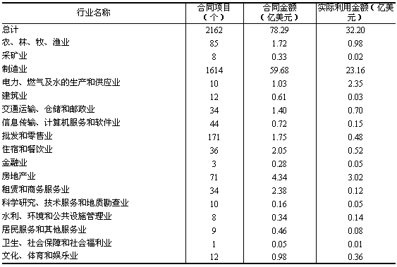 表8:2006年外商直接投資分行業(yè)情況(驗資口徑)
