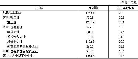 1762.7億元,增長(zhǎng)20.3%。股份制、外商及港澳臺(tái)投資企業(yè)繼續(xù)快速增長(zhǎng)。