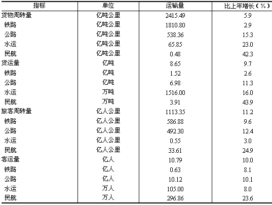 全年全省交通運(yùn)輸、倉儲(chǔ)及郵政業(yè)實(shí)現(xiàn)增加值737.88億元,比上年增長9.9%。 年末全省鐵路通車?yán)锍?944.2公里;高速公路通車?yán)锍?439公里。全年各種運(yùn)輸方式完成貨物周轉(zhuǎn)量2415.49億噸公里,比上年增長5.9%;完成旅客周轉(zhuǎn)量1113.35億人公里,增長11.2%。 全年全省郵電業(yè)務(wù)總量722.74億元,比上年增長28.8%。其中,郵政業(yè)務(wù)總量36.52億元,增長14.8%;電信業(yè)務(wù)總量686.22億元,增長29.6%。年末局用電話交換機(jī)總?cè)萘?582.50萬門,新增233.71萬門;本地固定電話用戶2027.20萬戶,新增163.70萬戶;移動(dòng)電話用戶2345.00萬戶,新增530萬戶。電話普及率為44.8部/百人,增長18.0%。年末計(jì)算機(jī)互聯(lián)網(wǎng)用戶327.30萬戶,新增52.26萬戶。