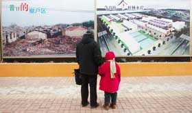 長(zhǎng)春市二道區(qū)居民在觀看棚戶區(qū)改造的對(duì)比圖。 |