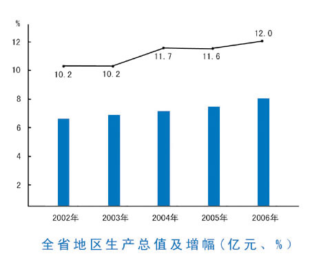 歷史將銘記“北大荒”的輝煌:半個多世紀(jì)以來,黑龍江省為國家提供了約占全國2/5的原油、2/3的木材、1/7的商品糧、十分之一的煤炭和大量的重型裝備。如今,在科學(xué)發(fā)展觀的指引下,黑龍江省重新踏上振興之旅,裝備工業(yè)、能源工業(yè)、哈大齊工業(yè)走廊等“亮點”頻現(xiàn),“北大荒”的核心競爭力日益凸顯。 2002年以來,黑龍江省生產(chǎn)總值先后突破4000億元、5000億元、6000億元大關(guān),2006年達(dá)到6216.8億元,年均增長11.1%,連續(xù)五年保持兩位數(shù)增長,高出全國0.6個百分點。同時,經(jīng)濟發(fā)展軟硬環(huán)境不斷改善,政府宏觀調(diào)控能力進(jìn)一步增強,全省綜合實力明顯提高。