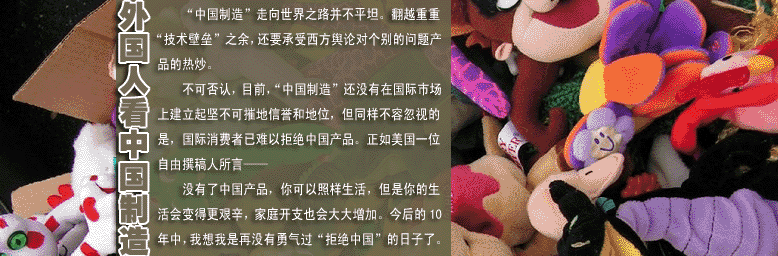 英國(guó)連鎖玩具店哈姆利對(duì)小朋友們有著非凡的吸引力。位于倫敦著名商業(yè)街?jǐn)z政街上的哈姆利總店總是一派熱鬧景象。在這家店里,帶“中國(guó)制造”標(biāo)簽的玩具比比皆是。店員和顧客也都稱贊說,來自中國(guó)的玩具造型可愛,是孩子們的好伙伴。這座六層高的建筑就像一個(gè)游樂園,進(jìn)門十幾步遠(yuǎn)處有一座“模擬叢林”,仿真的獅子、大猩猩、長(zhǎng)臂猿、長(zhǎng)頸鹿向光顧的客人在招手。[詳情] | |