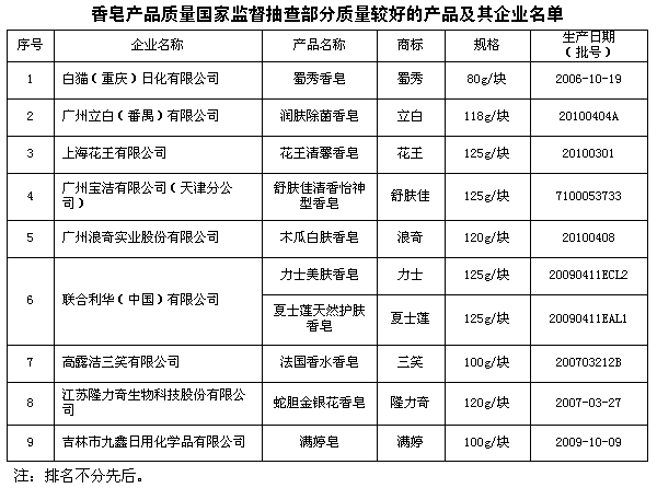為了維護(hù)消費(fèi)者的合法權(quán)益,促進(jìn)香皂行業(yè)健康發(fā)展,國家質(zhì)檢總局組織對香皂產(chǎn)品質(zhì)量進(jìn)行了國家監(jiān)督抽查,共抽查了北京、天津、吉林、上海、江蘇、安徽、浙江、湖南、湖北、河南、山東、廣東、貴州、廣西、重慶等15個(gè)省、直轄市、自治區(qū)32家企業(yè)生產(chǎn)的50種產(chǎn)品(不涉及出口產(chǎn)品),產(chǎn)品實(shí)物質(zhì)量合格率為96%。