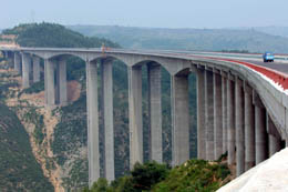 還在幾年前,開(kāi)車從陜西省會(huì)西安到陜北的延安、榆林等地所需要的時(shí)間要以天計(jì),而現(xiàn)在這個(gè)時(shí)間已經(jīng)分別縮短至三個(gè)多小時(shí)和五個(gè)多小時(shí)。飽嘗交通閉塞之苦的陜西省,在推進(jìn)鐵路建設(shè)的同時(shí),也致力于加快公路建設(shè),編織縱橫三秦大地的公路網(wǎng)。 “十五”期間,陜西省公路建設(shè)投資不斷攀升,全省交通固定資產(chǎn)投資累計(jì)完成675億元,是“八五”和“九五”10年投資總和的近三倍。五年間,陜西新增公路一萬(wàn)公里,全省公路總里程達(dá)到五萬(wàn)多公里。目前,陜西省高速公路通車?yán)锍踢_(dá)到1600多公里,2007年底將突破2000公里。陜西省交通廳廳長(zhǎng)曹森表示,“十一五”末,陜西省公路總里程將達(dá)到六萬(wàn)公里,高速公路通車?yán)锍踢_(dá)到3100公里,五年新增里程1800公里;全省85%以上的縣(市、區(qū))一小時(shí)進(jìn)入高速公路網(wǎng),西安至周邊省(區(qū))中心城市“一日交通圈”形成。 為改變農(nóng)村公路的落后面貌,陜西省還加大了通村公路的建設(shè)力度,2006年全省建成通村公路14000公里,使5000個(gè)建制村的農(nóng)民走上了油路、水泥路,極大緩解了農(nóng)民“出行難”問(wèn)題。根據(jù)規(guī)劃,陜西省在“十一五”期間計(jì)劃安排資金200億元以上,新建、改建和鋪筑油路(水泥路)約九萬(wàn)公里,其中安排通村公路建設(shè)約六萬(wàn)公里,使全省擁有通村公路的建制村比例由目前的29%增加到80%。