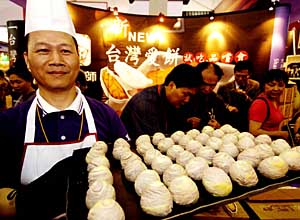 來自臺灣的糕點(diǎn)師傅在第九屆海峽經(jīng)貿(mào)會(huì)期間制作展示臺灣名點(diǎn)——臺灣愛餅。 |