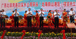 廣西北部灣港口深水公用碼頭項(xiàng)目開(kāi)工。新華社記者:劉廣銘 攝