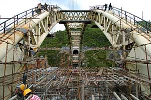 建設(shè)中的宜萬鐵路野三河大橋。新華社記者 郝同前 攝 | 江水不為患