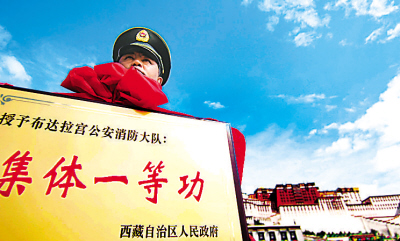 8月27日,西藏自治區(qū)政府授予布達拉宮消防大隊集體一等功,以表彰消防大隊保護布達拉宮23年來未發(fā)生一起火災(zāi)事故。