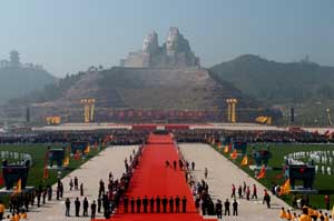 4月18日,106米高的炎黃二帝巨型塑像在鄭州黃河風(fēng)景區(qū)落成。攝影/本報(bào)記者 趙鵬 |