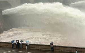 黃河小浪底調水調沙的壯觀風景。攝影/本報記者