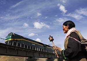 火車正式穿梭“世界屋脊”,交通瓶頸徹底打破,西藏潛藏多年的優(yōu)勢迅速凸顯。 “以前人們只知道侍弄土地,現(xiàn)在都思謀吃‘鐵路飯’。”拉薩市乃瓊鎮(zhèn)色瑪村村委會主任尼瑪說,今年春天村農(nóng)民集資90萬元創(chuàng)建了政通物流股份有限公司,另有30戶村民花220萬元每家購回一臺貨運汽車。 尼瑪說,盡管眼下進出藏鐵路貨運量不是很大,但前景十分看好。公司已與中國化工總公司達成協(xié)議,年內(nèi)他們負責從180公里外的仁布縣為其運輸10000噸鉛金粉到拉薩火車西站。另外,成都一家運輸公司已有意象讓村里的運輸隊,常年承擔從拉薩火車西站往20公里外的拉薩市區(qū)每天運輸三個火車皮的百貨。 “事實證明,青藏鐵路的建成通車,推進了西藏產(chǎn)業(yè)建設(shè),壯大了特色經(jīng)濟的發(fā)展。”西藏自治區(qū)發(fā)展和改革委員會副主任何本云說,“天路”把西藏融入全國統(tǒng)一的大市場,對西藏產(chǎn)業(yè)結(jié)構(gòu)的優(yōu)化升級、提高自我發(fā)展能力,打造高原特色品牌,具有重要的促進作用;疖囘M藏以來,西藏此前較為單一的采購中心,正由成都向西安、蘭州、西寧等多中心發(fā)展。目前,以藏北青藏鐵路沿線為軸心,以拉薩為核心,輻射林芝、日喀則地區(qū)全新經(jīng)濟帶初步形成。
