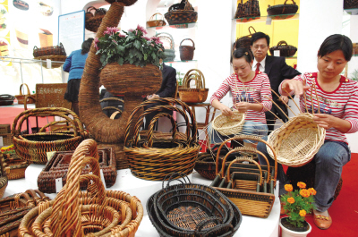 9月25日,“2007中國安徽名優(yōu)農(nóng)產(chǎn)品交易會”在合肥開幕。圖為兩名技工在現(xiàn)場展示皖西北“柳編”工藝。