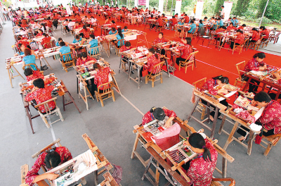 “千女繡金秋”的熱鬧場(chǎng)面。戚振林 攝 |