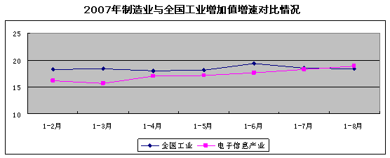 今年1-8月我國電子信息全行業(yè)繼續(xù)保持平穩(wěn)發(fā)展,總量增速小幅上升,規(guī)模以上制造業(yè)經(jīng)濟(jì)效益穩(wěn)步回升。1-8月全行業(yè)實(shí)現(xiàn)主營業(yè)務(wù)收入29929.2億元,同比增長19.4%,其中制造業(yè)實(shí)現(xiàn)主營業(yè)務(wù)收入26490.3億元,同比增長19.0%;軟件業(yè)實(shí)現(xiàn)收入3438.9億元,同比增長22.9%。制造業(yè)實(shí)現(xiàn)工業(yè)增加值5794.0億元,同比增長18.9%;實(shí)現(xiàn)利潤922.1億元,同比增長25.6%;實(shí)現(xiàn)稅金307.2億元,同比增長18.5%。