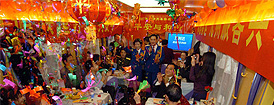 圖為在T69次列車上舉辦的“春節(jié)晚會(huì)”現(xiàn)場(chǎng)(2007年2月17日攝)。 |