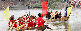 6月19日,農(nóng)民代表隊(duì)激烈角逐。附近九個(gè)村莊的農(nóng)民進(jìn)行端午龍船賽。 |