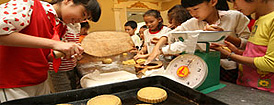 農(nóng)村留守兒童和城里孩子一起學(xué)做月餅。 |