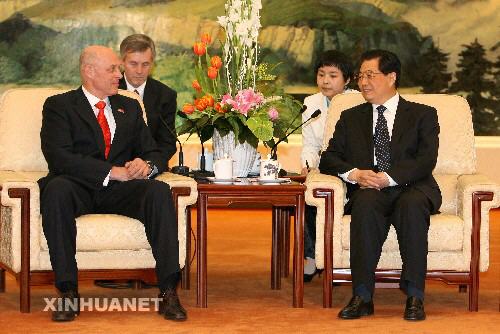 12月13日,國家主席胡錦濤在北京人民大會(huì)堂會(huì)見來華參加第三次中美戰(zhàn)略經(jīng)濟(jì)對(duì)話的美國總統(tǒng)布什的特別代表、財(cái)政部長保爾森等美方代表團(tuán)主要成員。