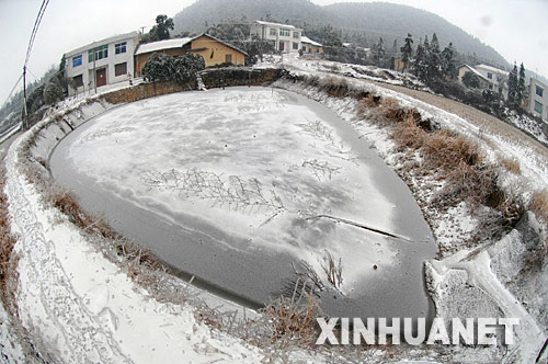 這是湖南寧鄉(xiāng)縣境內(nèi)一處冰凍的水塘(1月25日攝)。 | |