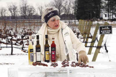 第十三屆尼亞加拉冰酒節(jié)日前在加拿大安大略省舉辦,吸引了來自美國和歐洲的大批游客。冰酒指的是用采摘時已經(jīng)凍硬的葡萄釀造的一種昂貴的甜葡萄酒。安大略省的尼亞加拉地區(qū)是世界上著名的冰酒產(chǎn)區(qū)之一。圖為加拿大著名冰酒生產(chǎn)商向游客展示冰酒和冰葡萄。新華社發(fā)