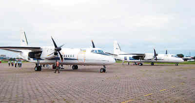 2月21日,玻利維亞政府和空軍在圣克魯斯舉行儀式,接受兩架中國(guó)制造的新舟60飛機(jī)。此次中國(guó)新舟60飛機(jī)來玻也標(biāo)志著中國(guó)制造的客機(jī)歷史上第一次進(jìn)入南美洲市場(chǎng)。圖為兩架中國(guó)制造的新舟60飛機(jī)停放在玻利維亞東部圣克魯斯省首府圣克魯斯的機(jī)場(chǎng)。新華社發(fā)