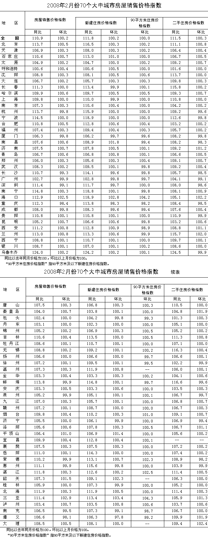根據(jù)國家發(fā)展改革委、國家統(tǒng)計(jì)局調(diào)查顯示,2月份,全國70個大中城市房屋銷售價格同比上漲10.9%,漲幅比1月低0.4個百分點(diǎn);環(huán)比上漲0.2%,漲幅比1月低0.1個百分點(diǎn)。