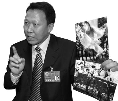 “要徹底根治理白色污染,就要從禍水源頭塑料袋抓起!眱蓵希眻F(tuán)代表劉雪榮舉著兩張廢塑料袋滿天飛的照片,奮力疾呼。