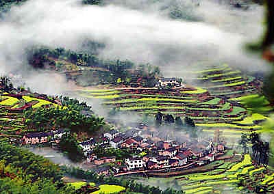 春雨時分,浙江省遂昌縣南尖巖山區(qū)煙雨繚繞,美麗的云海飄行于山間,秀麗的梯田在云霧中若隱若現(xiàn),恰似人間仙境。