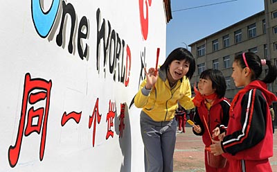 沈陽:小學(xué)校繪百米“奧運(yùn)墻”