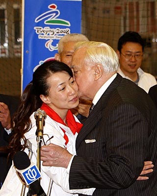 來華訪問的法國參議院議長克里斯蒂安·蓬斯萊日前專程到上海市殘疾人體育訓(xùn)練中心看望中國奧運火炬手金晶,并轉(zhuǎn)交了法國總統(tǒng)薩科齊致金晶的慰問信。