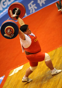 4月18日,吉林隊(duì)選手穆爽爽在2008全國(guó)女子舉重錦標(biāo)賽暨奧運(yùn)選拔賽75公斤以上級(jí)比賽中,以145公斤、183公斤和328公斤的成績(jī)分別獲得抓舉、挺舉和總成績(jī)冠軍,并超該級(jí)別三項(xiàng)世界紀(jì)錄。