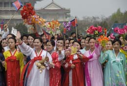 4月28日,朝鮮民眾沿途歡迎奧運(yùn)圣火的到來。當(dāng)日,北京奧運(yùn)會圣火傳遞活動在朝鮮平壤舉行。 |