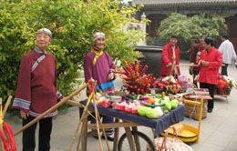 “五一”期間,北京大觀園舉辦了古裝表演“元妃省親”、“黑祥子”人體雕塑表演、“京城絕活兒”——老北京叫賣等文化系列活動(dòng),吸引了眾多游客觀賞。