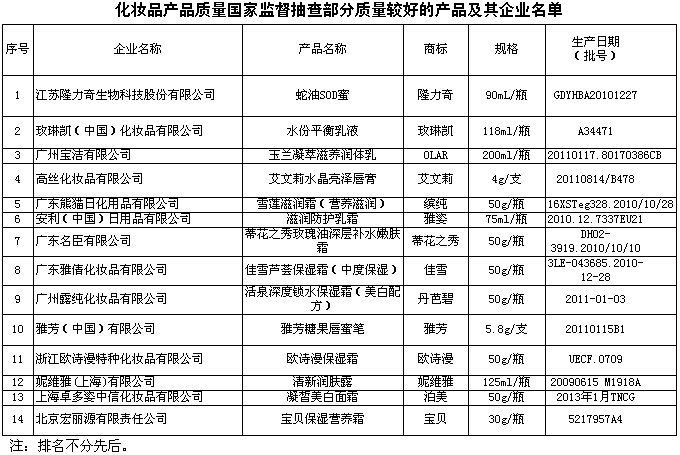 為了維護(hù)消費者的合法權(quán)益,促進(jìn)化妝品行業(yè)健康發(fā)展,國家質(zhì)檢總局組織對化妝品產(chǎn)品質(zhì)量進(jìn)行了國家監(jiān)督抽查,共抽查了北京、上海、浙江、江蘇、廣東、福建等6個省、直轄市62家企業(yè)生產(chǎn)的80種產(chǎn)品(不涉及出口產(chǎn)品),產(chǎn)品實物質(zhì)量抽樣合格率為99.7%。