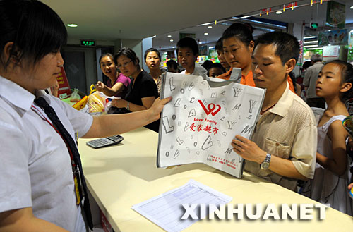 6月1日,顧客在烏魯木齊市的一家超市領(lǐng)取環(huán)保購物袋。新華社記者 趙戈 攝