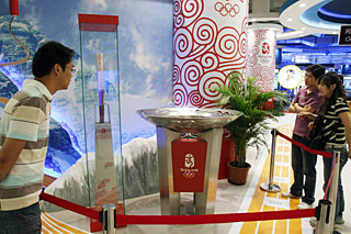 參觀者在觀看奧運圣火臺。新華社發(fā)(陳曉根
