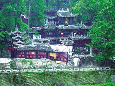 著名的二王廟隨山體滑坡垮塌 | “這甚至比一場戰(zhàn)爭的破壞都大!”站在因地震垮塌的二王廟一片殘?jiān)珨啾谂,國家文物局副局長童明康滿臉焦慮、連聲哀嘆。 截至5月23日,5·12大地震共造成四川省接近3/4的全國重點(diǎn)文物保護(hù)單位不同程度受損——128處中有79處受損,另外還有169處省級(jí)文物保護(hù)單位遭受不同程度的損失;館藏文物方面,損失達(dá)1839件,其中珍貴文物151件。初步估算,整個(gè)四川文物系統(tǒng)經(jīng)濟(jì)損失達(dá)600多億元。 為第一時(shí)間對(duì)受災(zāi)文物提出搶救方案,近日,國家文物局派出一支由國內(nèi)頂級(jí)古建筑修復(fù)專家組成的專家團(tuán)趕赴四川災(zāi)區(qū)考察。 凌云寺藏經(jīng)樓墻體開裂,大雄寶殿報(bào)身佛背光左下部脫落;眺望樂山的最佳景觀——烏尤寺景云亭基座有三面出現(xiàn)了垂直線裂縫,最寬裂縫達(dá)5厘米;鐘亭博脊出現(xiàn)裂縫,地面下沉;青衣別島處翹角脫落。而在峨眉山古建筑群,磚殿內(nèi)小佛像掉落、損毀,窗子開裂;萬年寺屋面瓦片滑落,水管破裂;圣積寺銅塔塔剎掉落;報(bào)國寺佛像脖子斷裂。 目前中國列入世界遺產(chǎn)名錄的35處中,四川省有4處,位列全國三甲,除了世界文化遺產(chǎn)1處(青城山—都江堰),還有世界自然和文化雙重遺產(chǎn)1處(峨眉山·樂山大佛),以及兩處世界自然遺產(chǎn)